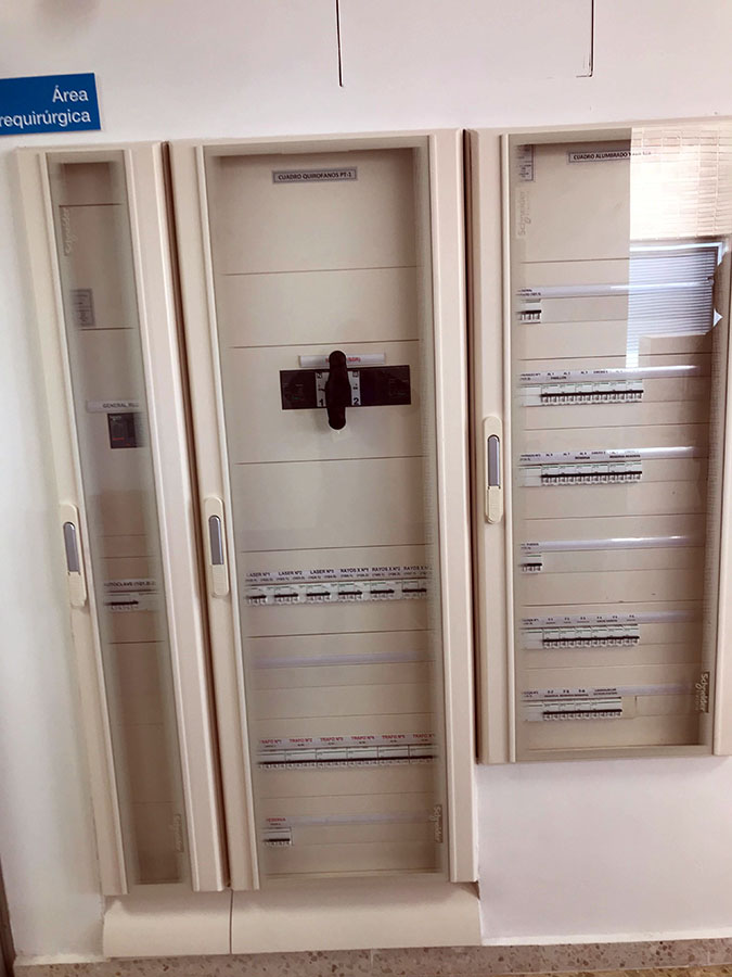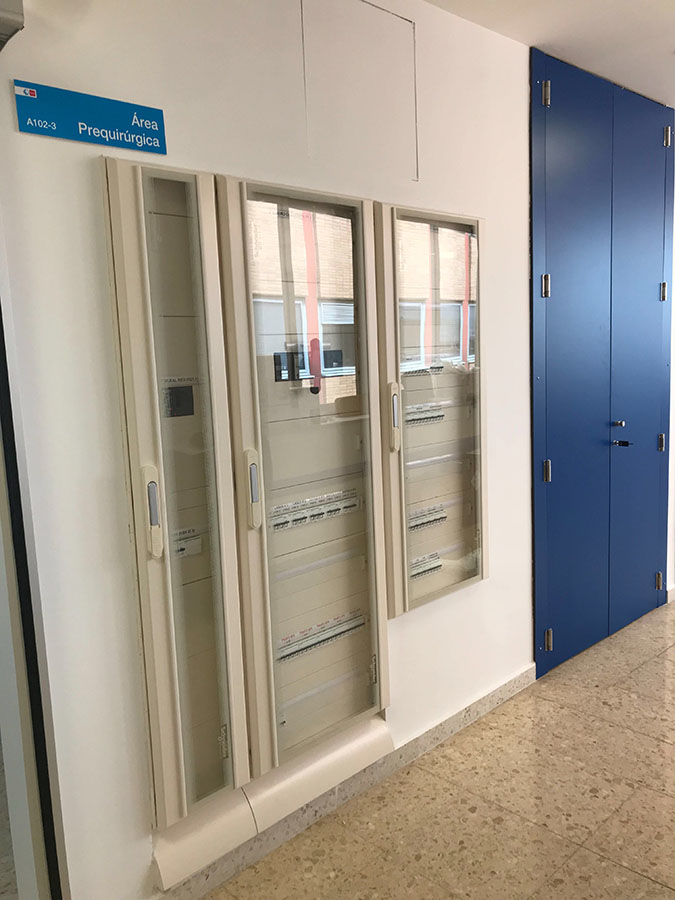 Montaje de nuevos S.A.I.S. de 60 kvA. del fabricante de primera nivel Riello, con autonomía de 2 horas a pleno rendimiento con una gran reforma eléctrica en los C.G.B.T del edificio de maternidad, implantando dos nuevos paneles de cuadros eléctricos.